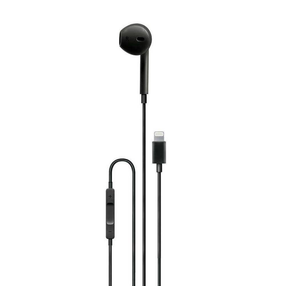 سماعة أذن أصلية من شركة REBENUO أحادية الجانب الأيمن متوافقة مع أجهزة ايفون لايتنينغ مع ميكروفون عالي الوضوح ، صوت نقي ، سماعة رأس سلكية مع تحكم بثلاثة أزرار ، امتوفرة بالون أسود