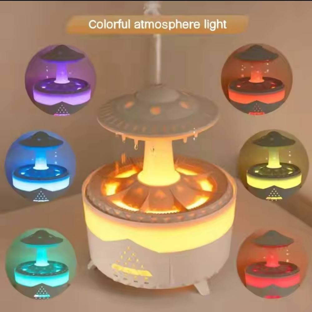 • مرطب السحب الممطرة مع تنقيط الماء: الميزة الفريدة هي ميزة صوت قطرات الماء. يصدر المنتج صوت قطرات المطر، مما يساعد في خلق جو هادئ وتهدئتك للنوم. إذا كنت تحب النوم على صوت المطر، فهذا المنتج يساعدك بالتأكيد.